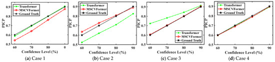 Considering that both Transformer and MSCVFormer can provide high-quality PIs with a high PICP and low PINAW when the nominal confidence is set to 90%, another experiment was conducted to compare their performance in implementing probabilistic HVAC load forecasting when the nominal confidence is set to 60%, 70%, 80%, and 90%. Figure 9 shows the PICP of these two methods in different cases. It can be observed that the proposed method can provide a PICP that matches the nominal confidence level in Case 2, Case 3, and Case 4, which is significantly better than the performance of the Transformer, which obtains a PICP with a large bias from the nominal confidence level [48]. This indicates that the proposed method can capture the uncertainty of model predictions to a limited extent in most cases and generate PIs of an appropriate width to cover these true values, providing effective information for formulating feasible DR strategies.