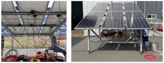 The experiment involved continuous monitoring and collection of data throughout the pre-experiment, active, and post-experiment periods. The results of the experiment are displayed using time steps to aid the comprehension of the data shown in the graphs. According to the experimental timeline, the experiment commenced at Time Step 60,765 (corresponding to 16:47:59) and concluded at Time Step 63,504 (corresponding to 16:58:29). Thus, the total duration of the experiment from start to finish was determined to be 10 min and 30 s. In this study, voltage, current, and temperature data from PV modules and cables were collected via communication at a frequency of 1 Hz. This is described in Equations (1) and (2).