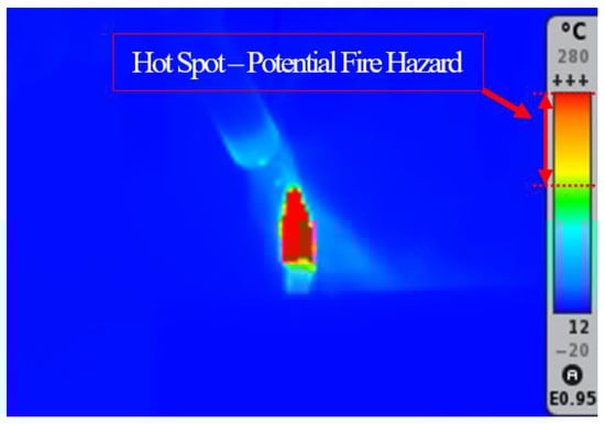 Figure 6 shows the data obtained from both thermal imaging camera and temperature sensor positioned at the point of ignition. The experimental observations captured by the thermal imaging camera enabled the visual observation of the heat distribution at areas of localized thermal accumulation. The flame temperature generated by the gas torch is estimated to have been above 100 °C. The cable’s accumulated temperature is considered to have exceeded 280 °C.