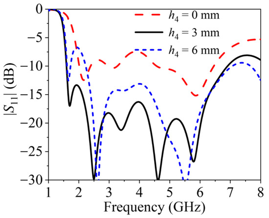 Simulated S-parameter of the antenna varies with the air gap h4.