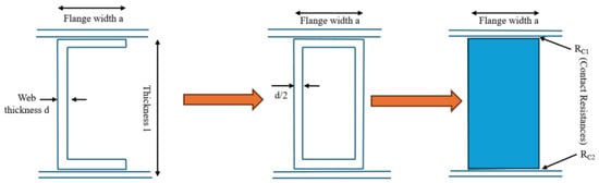 Also, the thermal resistance of the equivalent rectangle R is given by Equation (8):