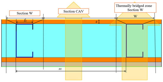 Regions of Section W and Section CAV in LSF wall based on ASHRAE method [13].