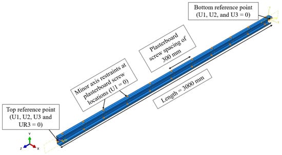 Abaqus model of 1200 mm × 3000 mm LSF wall with solid and web-perforated CFS studs.