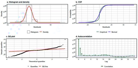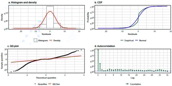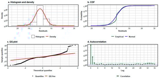 Energy efficiency assessment requires the use of statistical analysis methods and model validation methods [52,53]. It is important to use visual inspection of residual plots and error measures (RMSE, MAE, correlation coefficient) to assess model fit comprehensively.