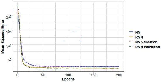 In feed-forward neural networks, the entire input dataset is processed simultaneously. In contrast, recurrent neural networks (RNNs) handle the input sequentially, retaining information about previously processed elements. Through this feedback mechanism, RNNs incorporate the results of earlier iterations into subsequent computations. The backwards propagation algorithm estimates weights and biases, i.e., solves the problem (13).