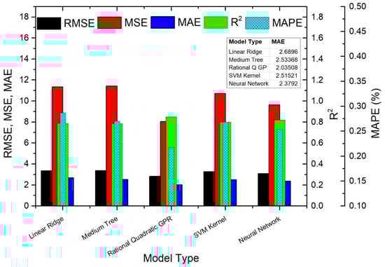 When summarizing the advantages and limitations of the methods explained above, it is recognized that each has different strengths and weaknesses. Ridge Regression offers simplicity, interpretability, and robustness against overfitting through L2 regularization, but its linear nature restricts its ability to capture nonlinear relationships. DT provide intuitive, rule-based structures that are easy to interpret and can model nonlinear patterns; however, a single tree is prone to high variance and instability unless carefully pruned. GPR is particularly powerful for capturing complex, nonlinear relationships and providing prediction intervals that quantify uncertainty, yet it is computationally demanding for large datasets and highly sensitive to kernel selection. SVMs deliver strong generalization performance and resilience to outliers, especially with nonlinear kernels, but require careful tuning of hyperparameters such as C and γ, and may be computationally expensive. Finally, ANNs demonstrate superior performance in modeling high-dimensional and nonlinear data, especially with sufficient training data, though they often act as ‘black boxes’, require significant computational resources, and are vulnerable to overfitting unless regularization techniques are applied.