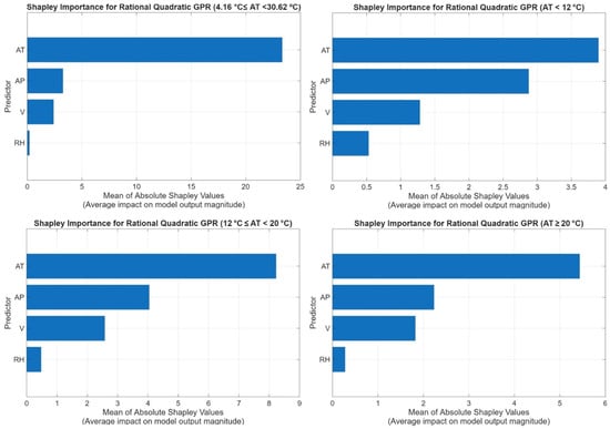 Accordingly, the dataset was divided into three different temperature ranges (AT < 12 °C, 12 °C ≤ AT < 20 °C, and AT ≥ 20 °C), and separate models were developed for each segment. Among the methods applied for power prediction, the Rational Quadratic GPR model exhibited higher accuracy in all scenarios compared to other approaches. While the MAE value was 2.417 MW in the non-segmented model, it was calculated as 2.035 MW, 2.441 MW, and 2.168 MW for the segmented models, respectively. With this approach, the weighted average MAE value was reduced to 2.225 MW, providing an improvement in accuracy of 192 kW. The average convergence rate of the predicted power output values to the actual values reached 99.77%.