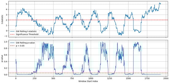 denotes the variance of the coefficient estimate. Under the null hypothesis , there is no significant difference in the conditional predictive performance between the two models. Under the alternative hypothesis , a statistically significant difference exists between the models.