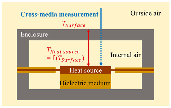 The cross-media temperature rise measurement realizes the temperature rise measurement across multiple media by measuring the temperature of the enclosure and combining the temperature rise relationship between the enclosure and the internal heat source, as shown in Figure 2.