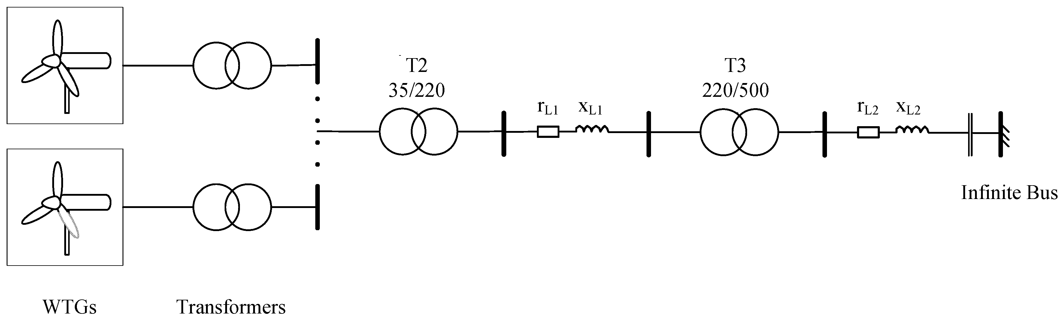 - Wang, L.; Xie, X.; Jiang, Q.; Liu, H.; Li, Y.; Liu, H. Investigation of SSR in practical DFIG-based wind farms connected to a series-compensated power system. IEEE Trans. Power Syst. 2015, 30, 2772–2779. [Google Scholar] [CrossRef]