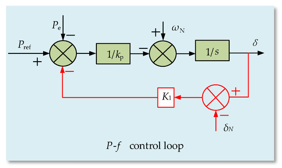 During a fault, as the grid voltage fault depth varies, the rate of change in the power angle alters; this change in the power angle further induces a variation in its rate of change, thereby deteriorating the system stability performance. However, if the characteristics of the power angle variation during the fault can be utilized and fed back to the active-power loop, the transient stability of the droop-controlled inverter during the fault can be improved, thus ensuring system stability. As shown in Figure 8, by modifying the active-frequency control loop of the droop-controlled inverter, the power angle deviation value of the system output is fed back to the active-power loop, thereby optimizing the stability boundary of the droop-controlled inverter.