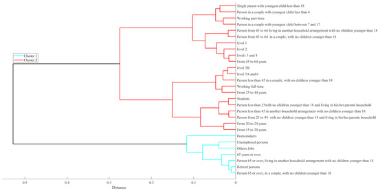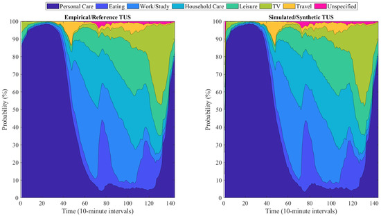 The Harmonized European Time Use Surveys (HETUSs), in this study, are a procedure that is used in order to get information on what people are doing each day [48]. Through sketches, questionnaires, or interviews, HETUS acquires systematic data on activities such as personal care, occupation, recreation, housework, and travelling. These polls are used to understand human behavior, socio-economic trends, and lifestyle models, thus being a greatly important tool for sociology, economics, and urban planning investigations [33]. HETUS captures activity duration (spent time) and initiation time (start time), providing a structured view of daily routines [5].