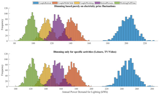 - For the application of the proposed stochastic model, we focus on lighting power demand modelling in residential buildings. The model accounts for different lighting technologies, including LED, CFL, and incandescent bulbs, each with distinct energy consumption characteristics. To evaluate potential energy-saving opportunities, we investigate two energy efficiency measures: reducing lighting power based on occupant activities and daylight availability and dimming based on electricity price signals.