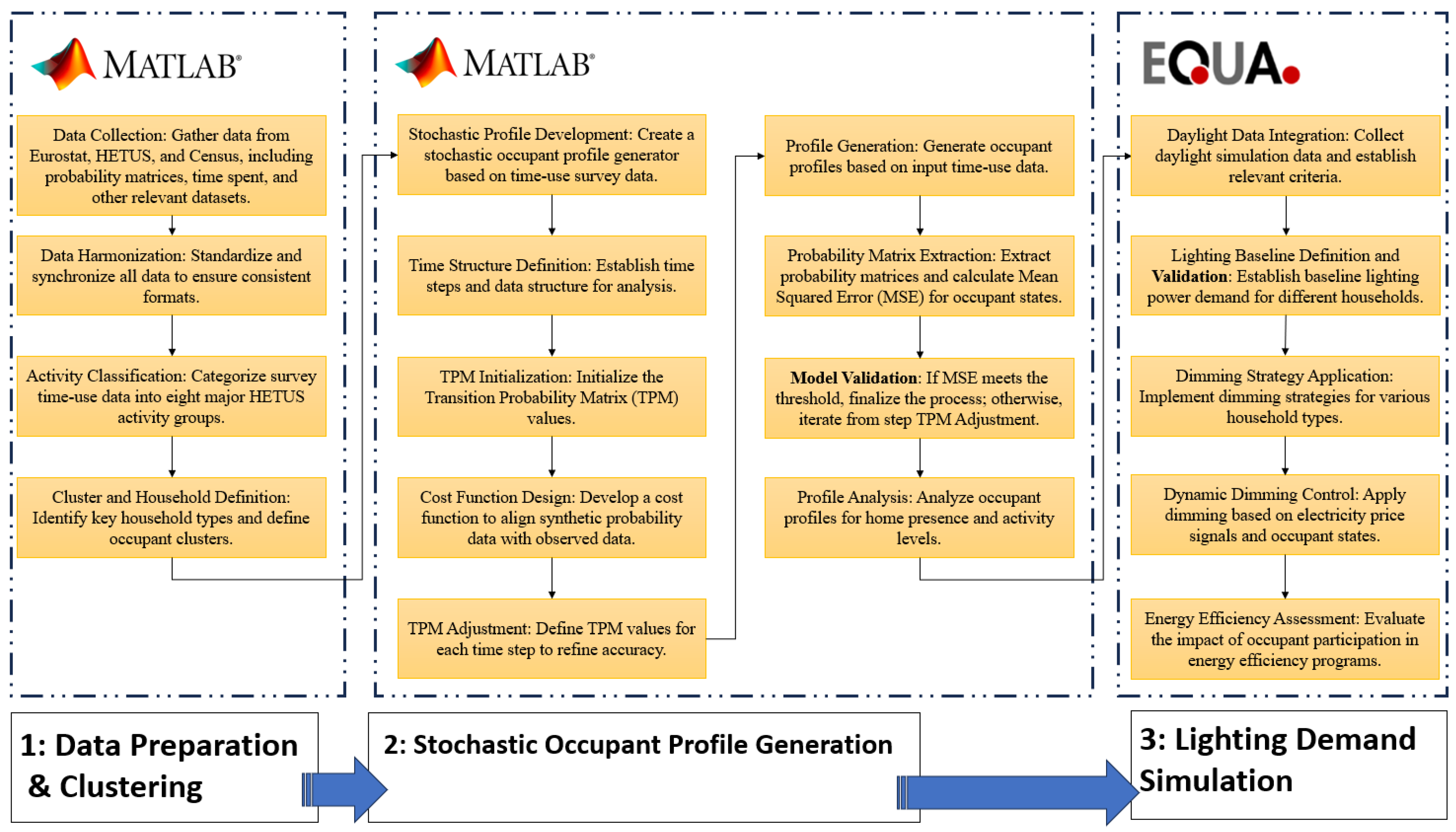 - The study introduces a novel dual-layer optimization approach, combining Bayesian updating with Dirichlet priors for transition probability calibration and constraint-based optimization to enhance the realism of occupant profiles. This approach improves data alignment with observed Time Use Survey (TUS) patterns and behavioral realism. The model demonstrates a minor deviation of +3.42% when validated against EU residential lighting demand standards