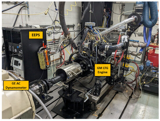 The testing for this project was conducted at Michigan Technological University’s (MTU) Advanced Power Systems Research Center (APSRC). The light-duty test cell at the APSRC is equipped with an 8000 RPM-810 Nm General Electric AC dynamometer, which is shown in Figure 1. The brake mean effective pressure (BMEP) was measured using an inline torque meter. The engine was operated at stoichiometric conditions (λ = 1). Lambda (λ) measurement was made using a Bosch LSU4.9 wide range O2 sensor.