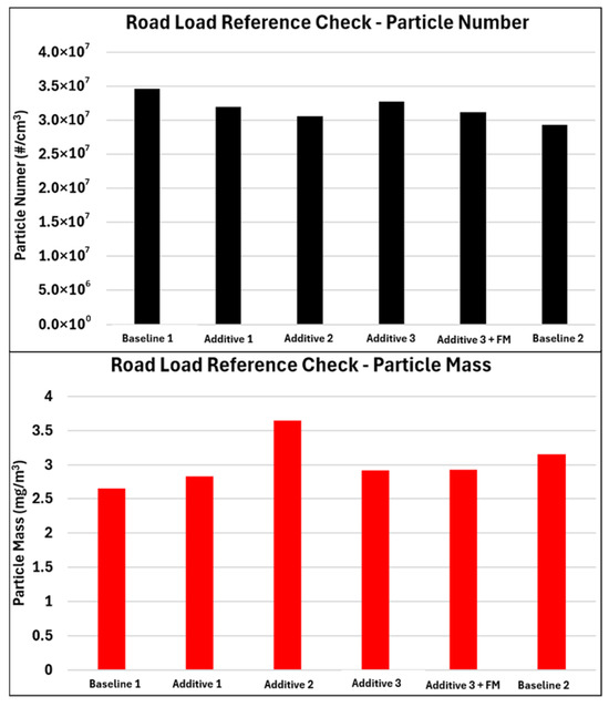 A reference check at the road load operating condition was performed using the cleaning fuel before the start of a new additive to ensure that the EEPS output was consistent.