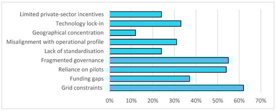 It is also noted that there is limited standardisation of battery technologies, connections, communication protocols, and vessel integration strategies across multiple jurisdictions [42,47,48,49]. Without harmonised technical and regulatory frameworks, the scalability of battery–electric propulsion remains constrained, even where vessel types and duty cycles are well-suited to electrification. This is particularly evident in urban logistics or passenger services where stop-start conditions are predictable and energy demand is more easily forecasted. This raises broader questions about the replicability of current pilot projects and the extent to which they represent scalable pathways for decarbonisation at a vessel fleet level.