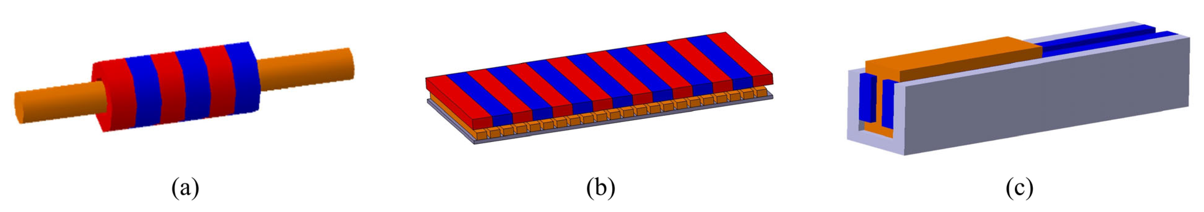 Cylindrical | High winding utilization, absence of transverse end effects, high thrust density, superior servo performance, etc. | Limited stroke, stringent manufacturing requirements, inefficient heat dissipation, etc. | Short-stroke high-acceleration systems such as automotive suspensions and electromagnetic catapults |