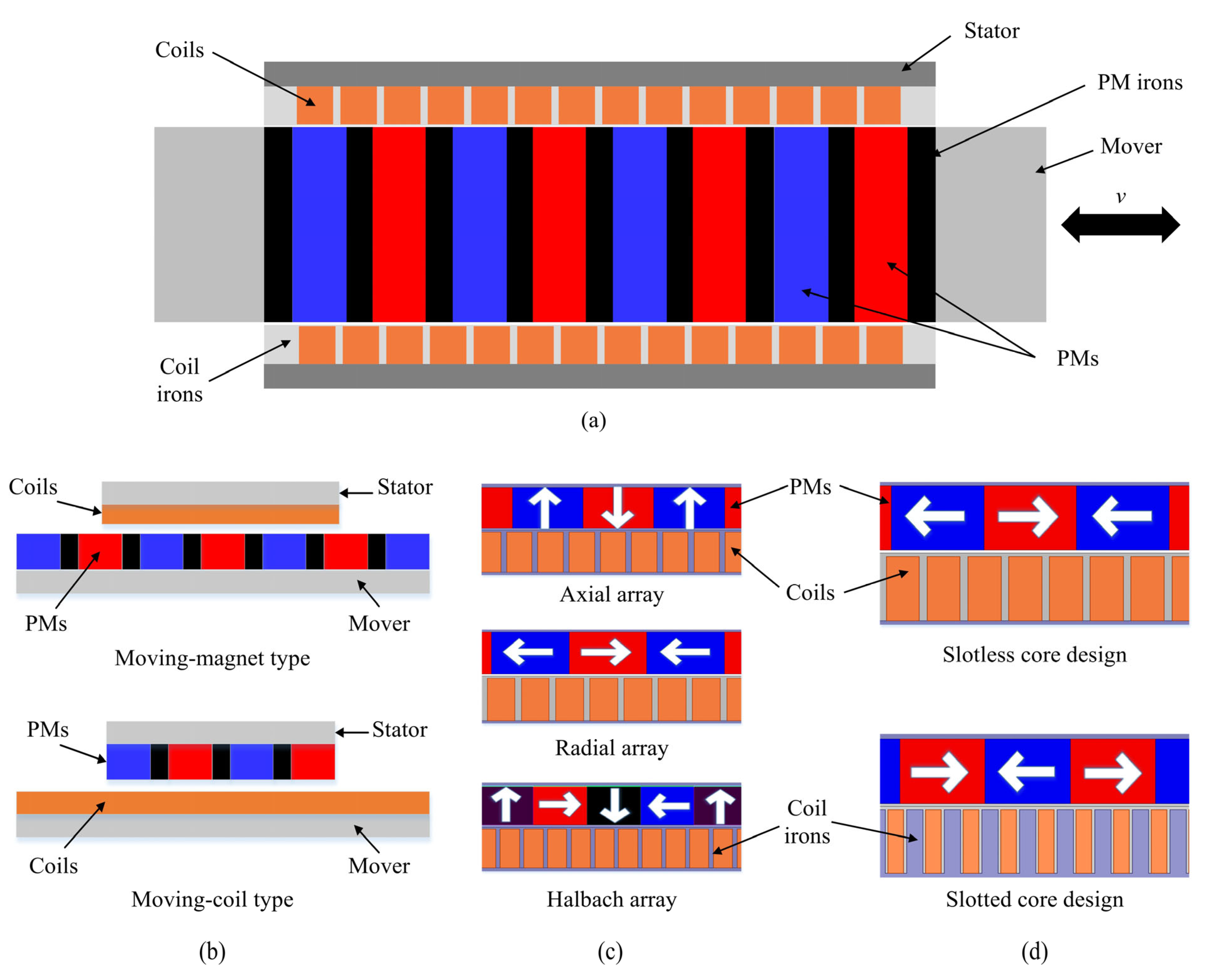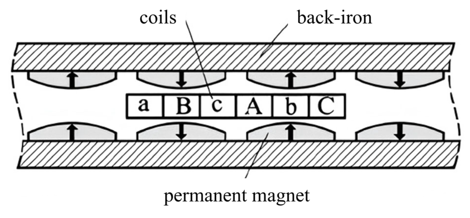 Moving-magnet | High power density, reliable electrical connections, efficient heat dissipation, etc. | Significant copper loss, low mechanical reliability of PMs, etc. | |