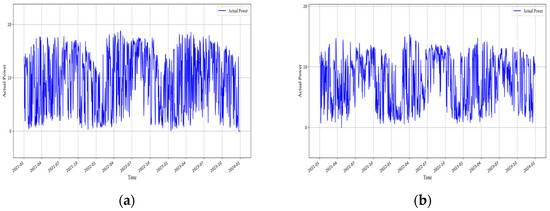 Daily power plot of all photovoltaic plants in Jiangxi Province. (a) Daily power plot of Photovoltaic Plant 1 in Jiangxi Province. (b) Daily power plot of Photovoltaic Plant 2 in Jiangxi Province. (c) Daily power plot of Photovoltaic Plant 3 in Jiangxi Province. (d) Daily power plot of Photovoltaic Plant 4 in Jiangxi Province.