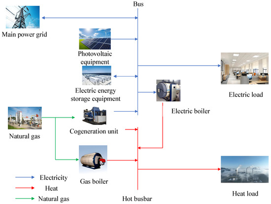 In the formula, and are, respectively, the lower and upper limits of the output electrical power of the combined heat and power unit. and are, respectively, the lower and upper limits of the charging/discharging power of the electrical energy storage device. and are, respectively, the lower and upper limits of the output thermal power of the electric boiler. and are, respectively, the lower and upper limits of the output thermal power of the gas boiler.
