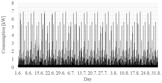 Electricity consumption profile for simulation period from 1 June to 31 August.