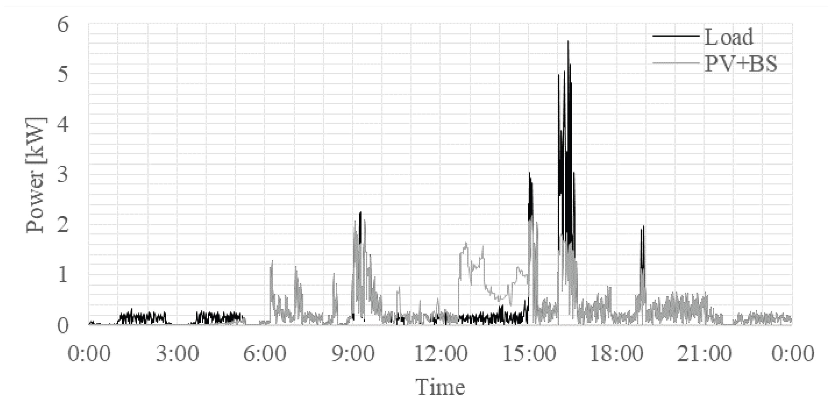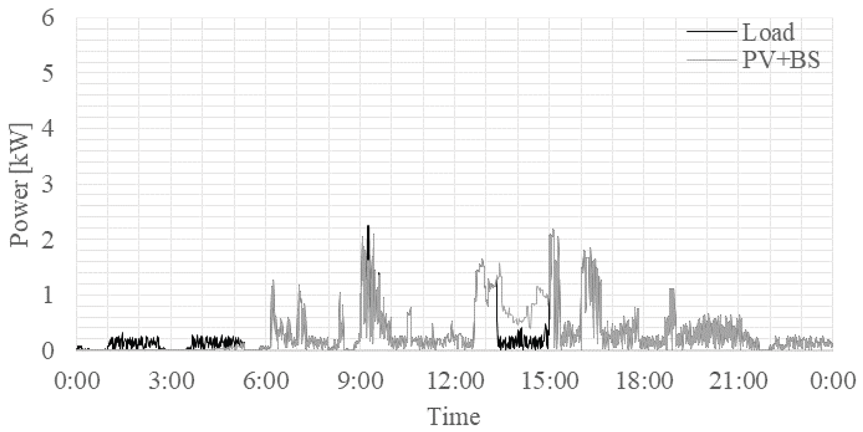 t, the amount of PV generation is not enough to meet the electricity demand and the algorithm discharges BS if there is enough stored energy. The BS capacity at time step