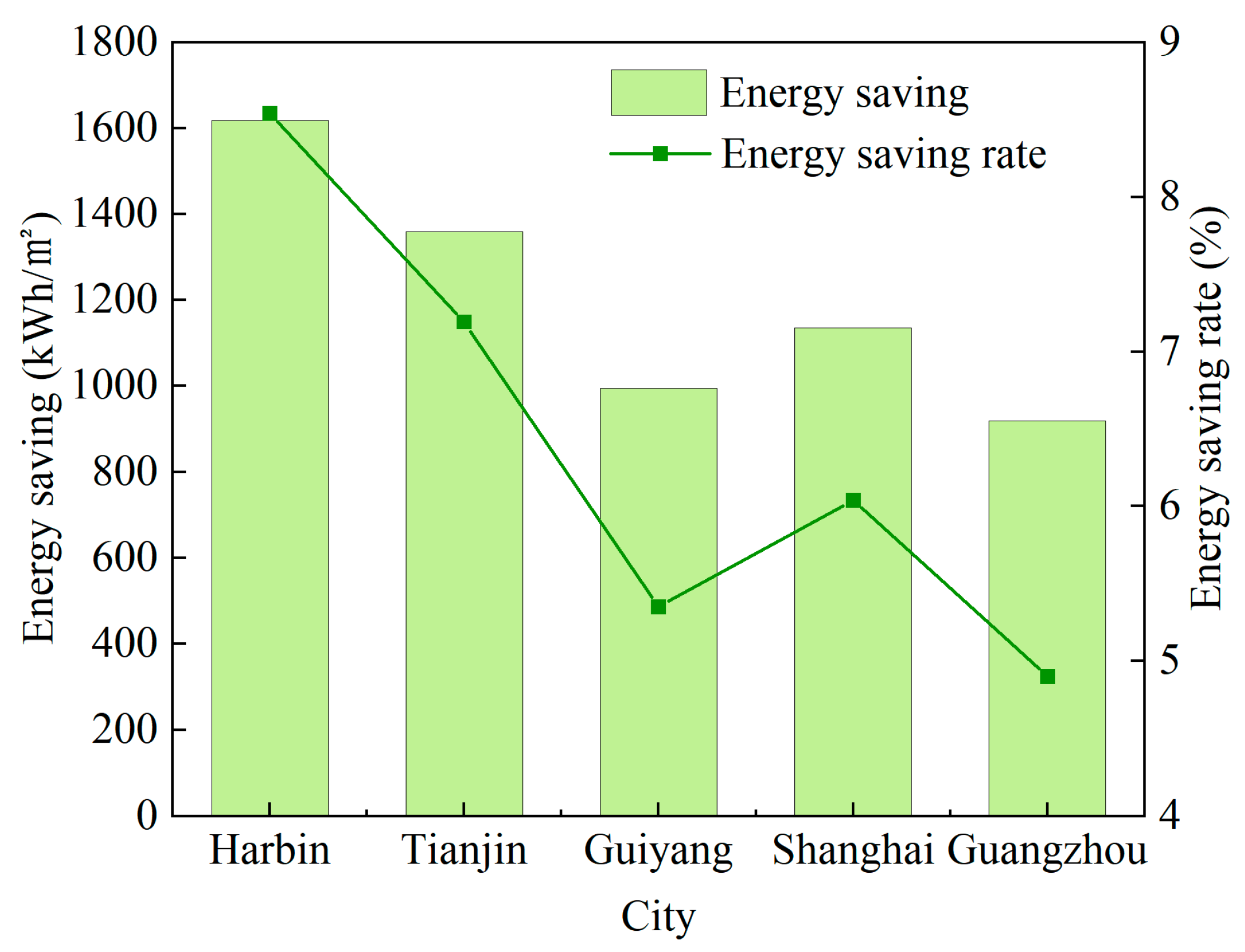 4.4.1. Effect of Different Climatic Conditions on the Energy Saving