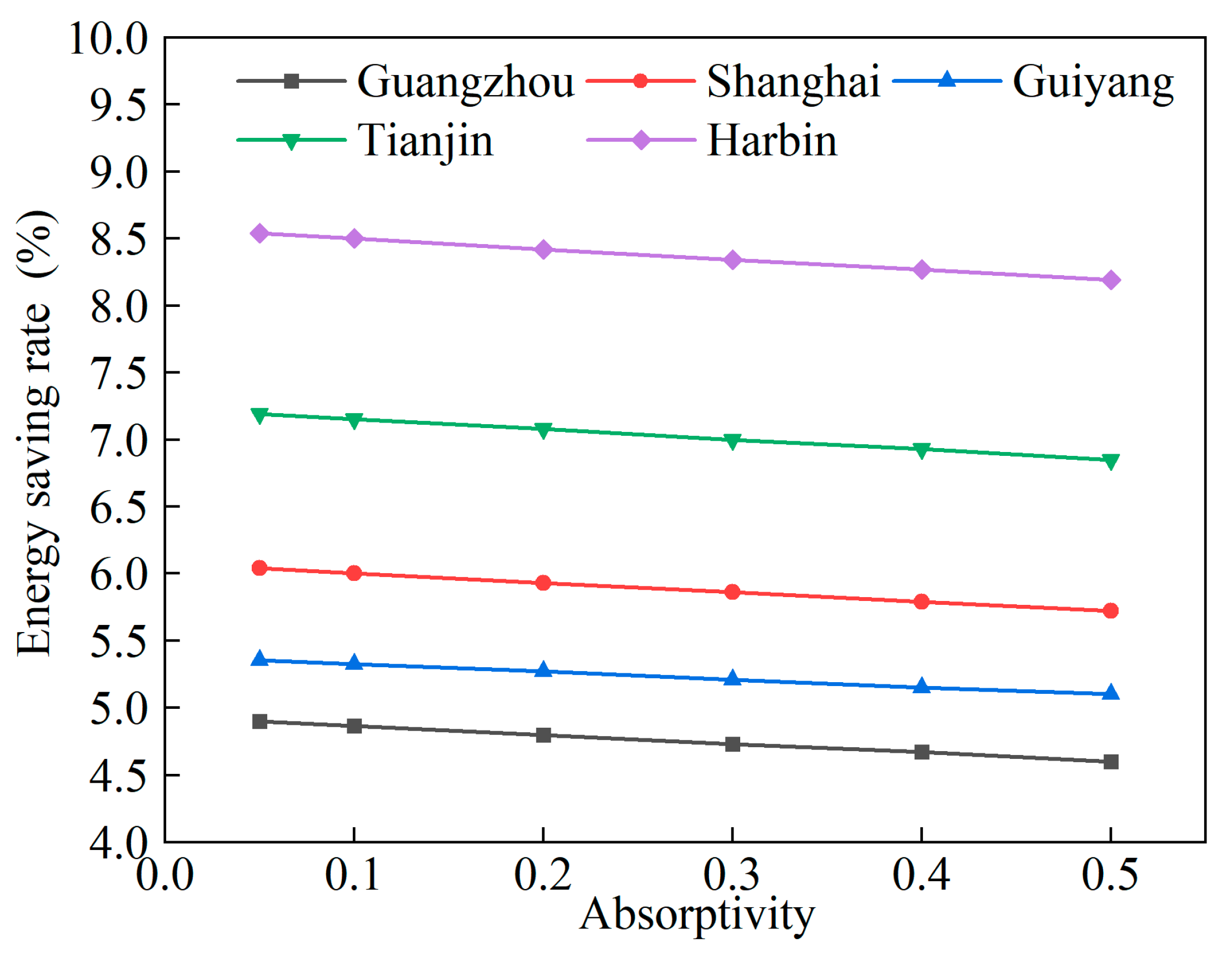 4.4.2. Effect of the Absorptivity on the Energy Saving