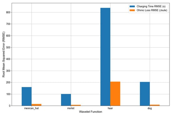 Table 2 demonstrates that with 20 hidden–layer neurons, the WNN attains the minimal RMSE in its predictions. The root mean square error for charging time is 142.3 s, and for ohmic loss, it is 38.5 joules. Despite the extended model training time for this configuration compared to employing 10 or 15 neurons, the notable enhancement in prediction accuracy illustrates the benefits of this parameter value.