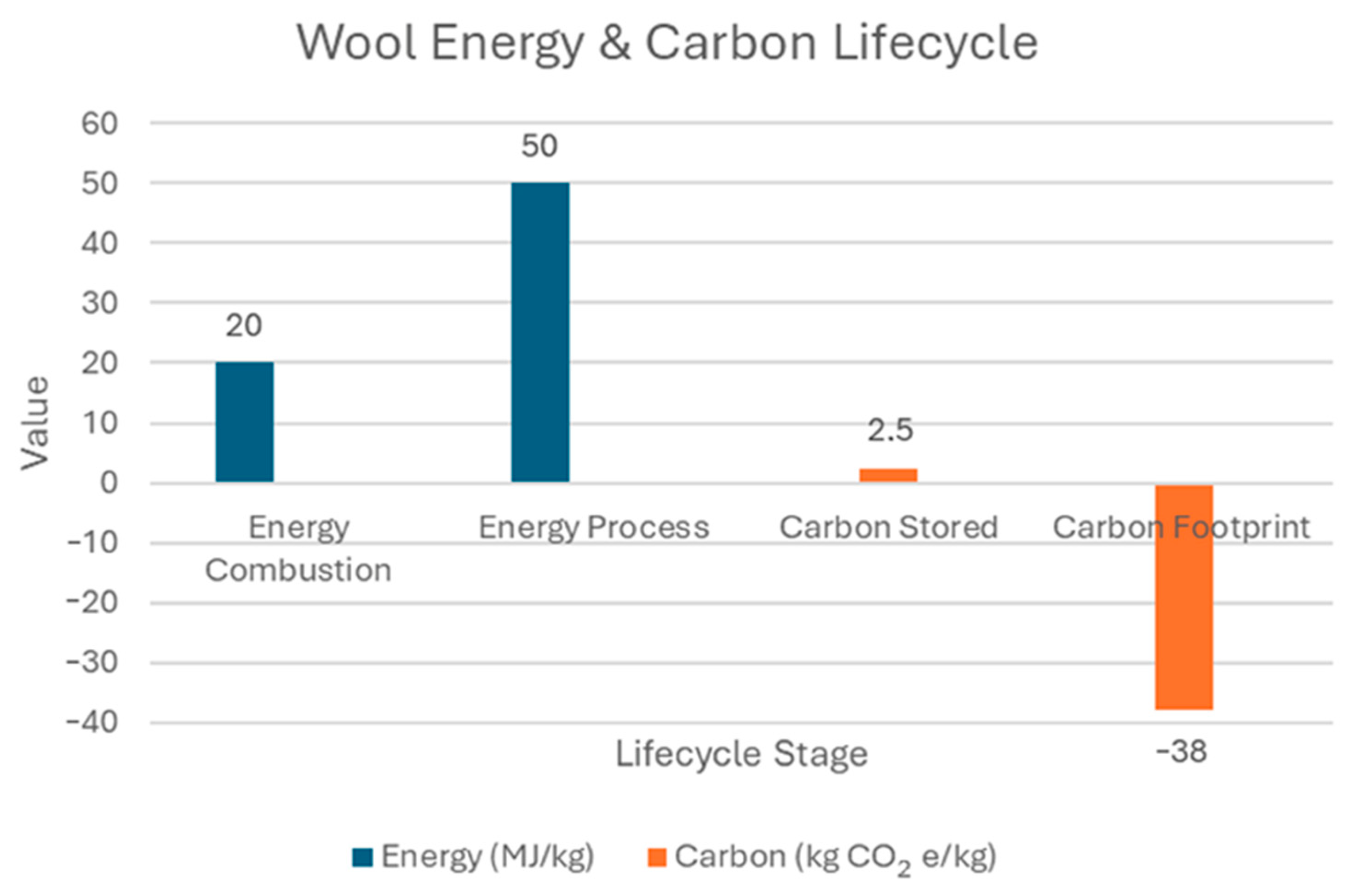 - Li, X.; Sun, L.; Zhang, J.; Li, X.; Yang, Y.; Zhu, L.; Zhang, Y.; Wang, L. Carbon Footprint of Wool at Cradle to Farm-Gate Stage in Victoria, Australia. AATCC J. Res. 2024, 11, 37–46. [Google Scholar] [CrossRef]