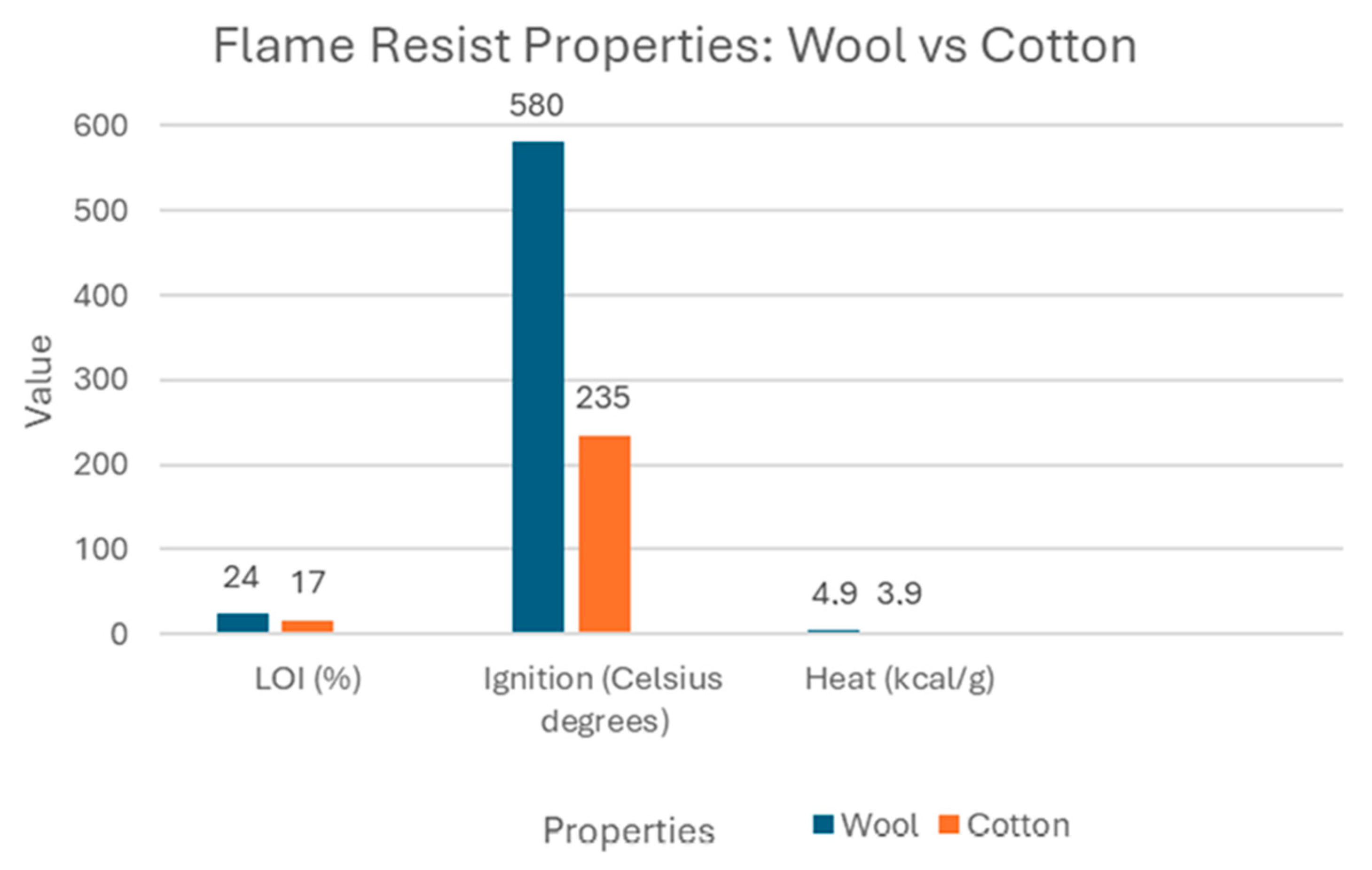 - Kim, N.K.; Bhattacharyya, D. Development of Fire Resistant Wool Polymer Composites: Mechanical Performance and Fire Simulation with Design Perspectives. Mater. Des. 2016, 106, 391–403. [Google Scholar] [CrossRef]