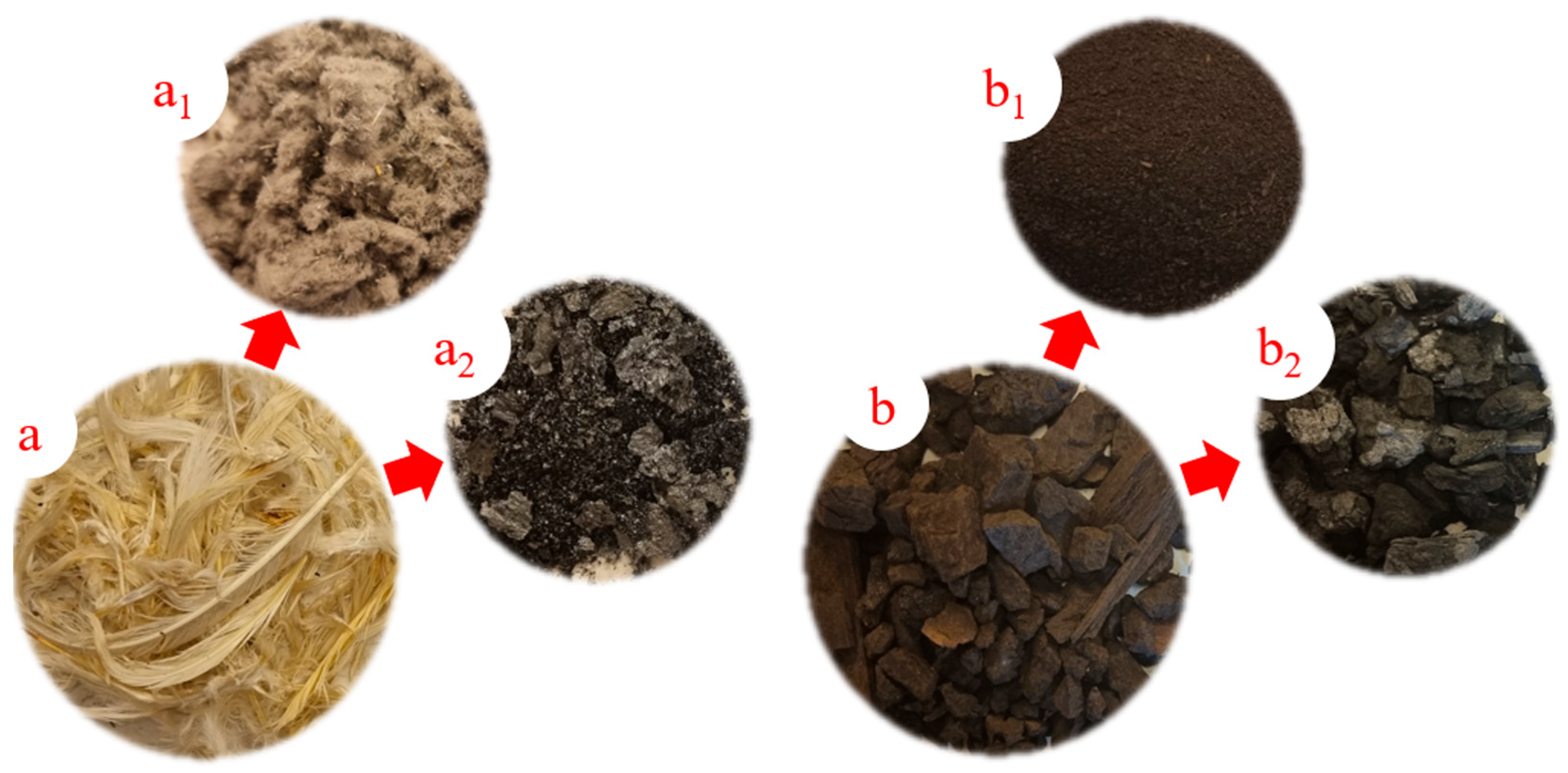 - Li, Z.; Reimer, C.; Picard, M.; Mohanty, A.K.; Misra, M. Characterization of Chicken Feather Biocarbon for Use in Sustainable Biocomposites. Front. Mater. 2020, 7, 3. [Google Scholar] [CrossRef]