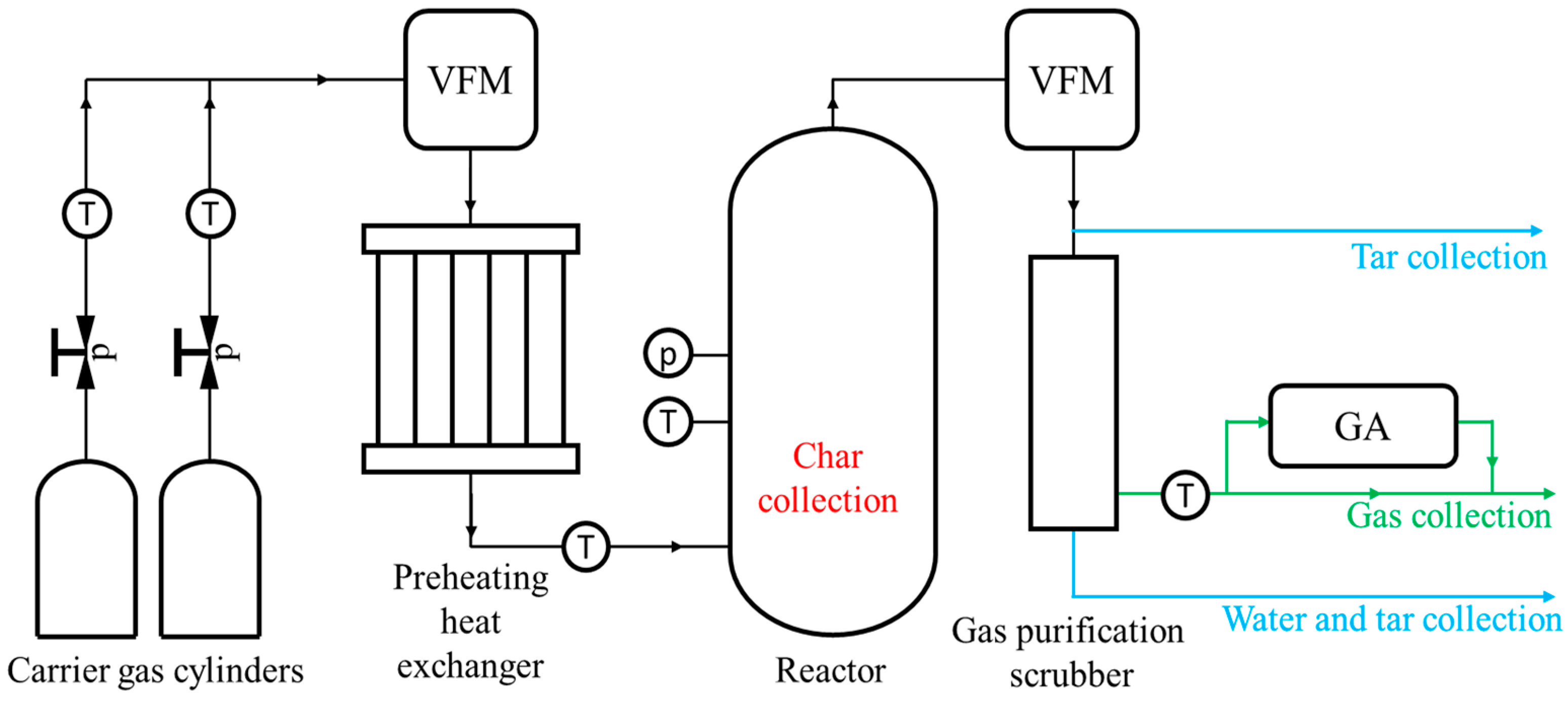 - Mahinpey, N.; Murugan, P.; Mani, T.; Raina, R. Analysis of bio-oil, biogas, and biochar from pressurized pyrolysis of wheat straw using a tubular reactor. Energy Fuels 2009, 23, 2736–2742. [Google Scholar] [CrossRef]