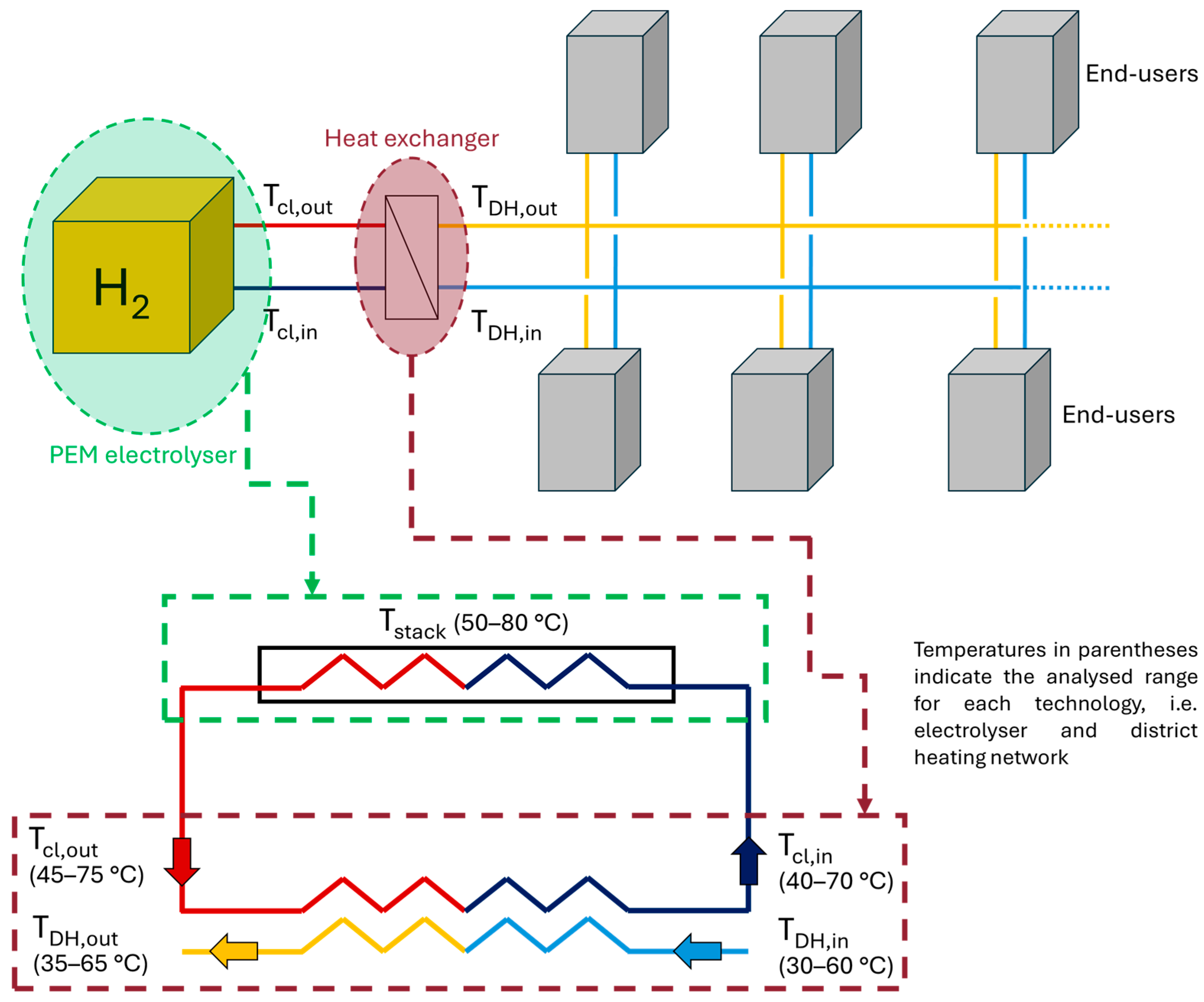 This analysis is crucial in assessing the benefits of waste heat valorisation from PEM electrolysis within integrated energy systems, particularly through its coupling with low-temperature district heating networks.