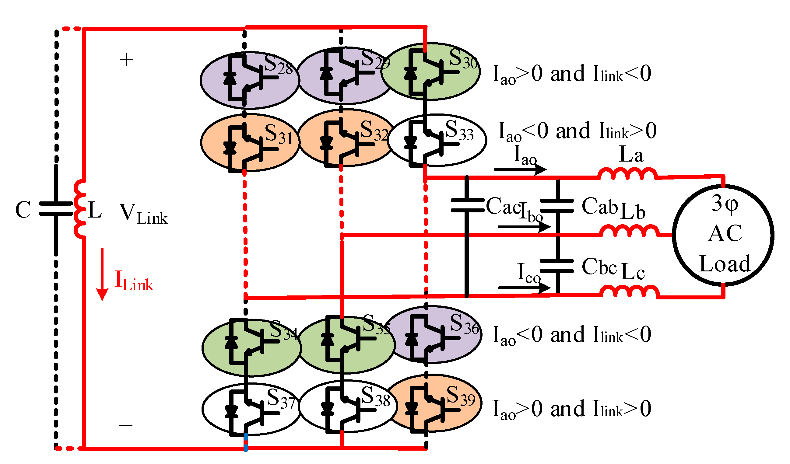- Amirabadi, M.; Baek, J.; Toliyat, H.A.; Alexander, W.C. Soft-Switching AC-Link Three-Phase AC–AC Buck–Boost Converter. IEEE Trans. Ind. Electron. 2015, 62, 3–14. [Google Scholar] [CrossRef]