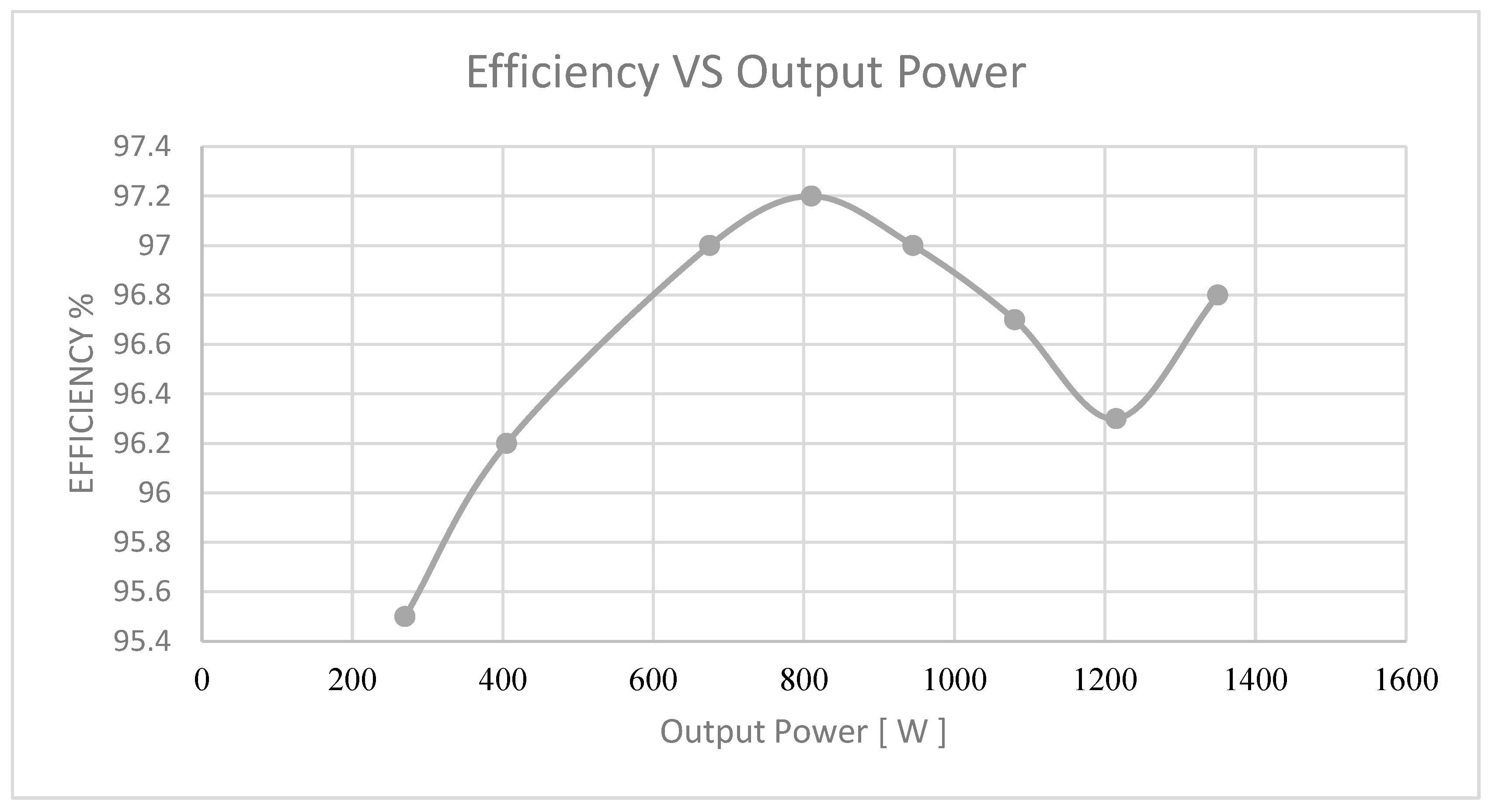 Efficiency (η) | 1350 W/1398 W | 96.8% |
