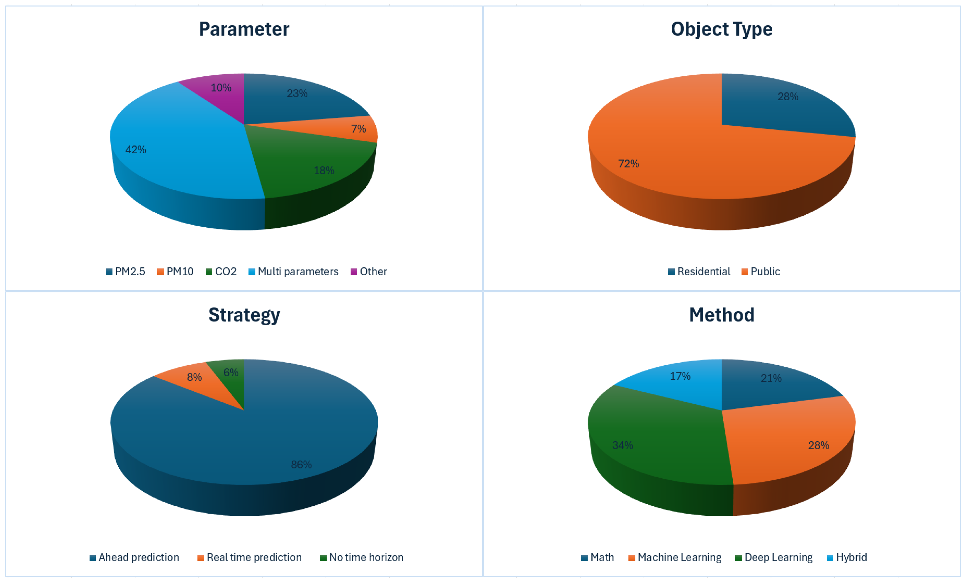 - A comprehensive taxonomy of IAQ prediction approaches, categorized by predicted variables, building typologies, model types, and data fusion strategies;