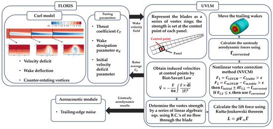 Overall flow chart of the coupled Curl–UVLM and the aeroacoustic module.