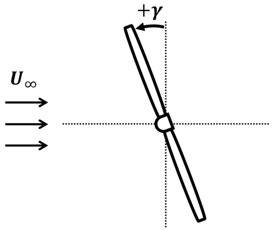 The NREL 5 MW reference wind turbine is used as the model turbine, and its general properties are listed in Table 3. The blade airfoil sections from root to tip consist of DU40, DU35, DU30, DU25, DU21, and NACA64 profiles. The detailed distribution is provided in [45]. A two-turbine configuration is simulated, where two NREL 5 MW turbines are aligned in series with a separation of six rotor diameters (6D), as shown in Figure 4. Yaw control is applied only to the upstream turbine, with yaw angles considered in the range of –30° to +30° at 15° intervals. The definition of yaw direction is illustrated in Figure 5. In the aerodynamic analysis model, the wind turbine blades are assumed to rotate counterclockwise when viewed from the upstream side.