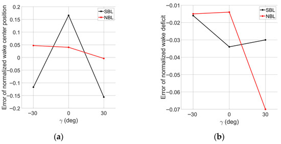 Distribution of normalized wake deficit at hub height. (a) SBL; (b) NBL.