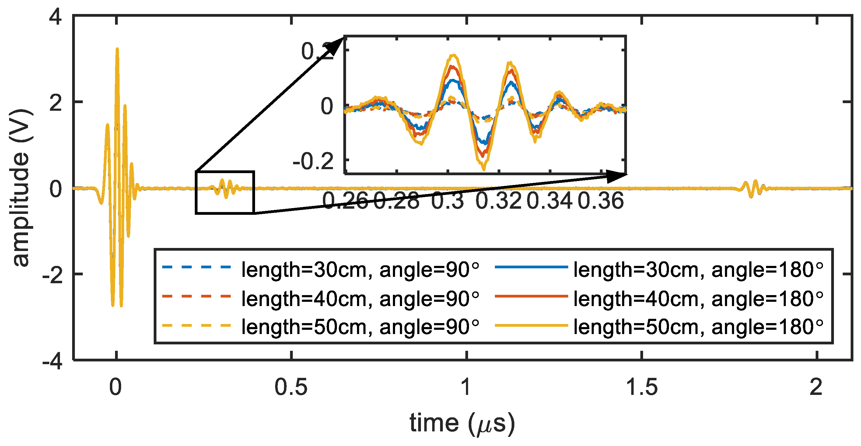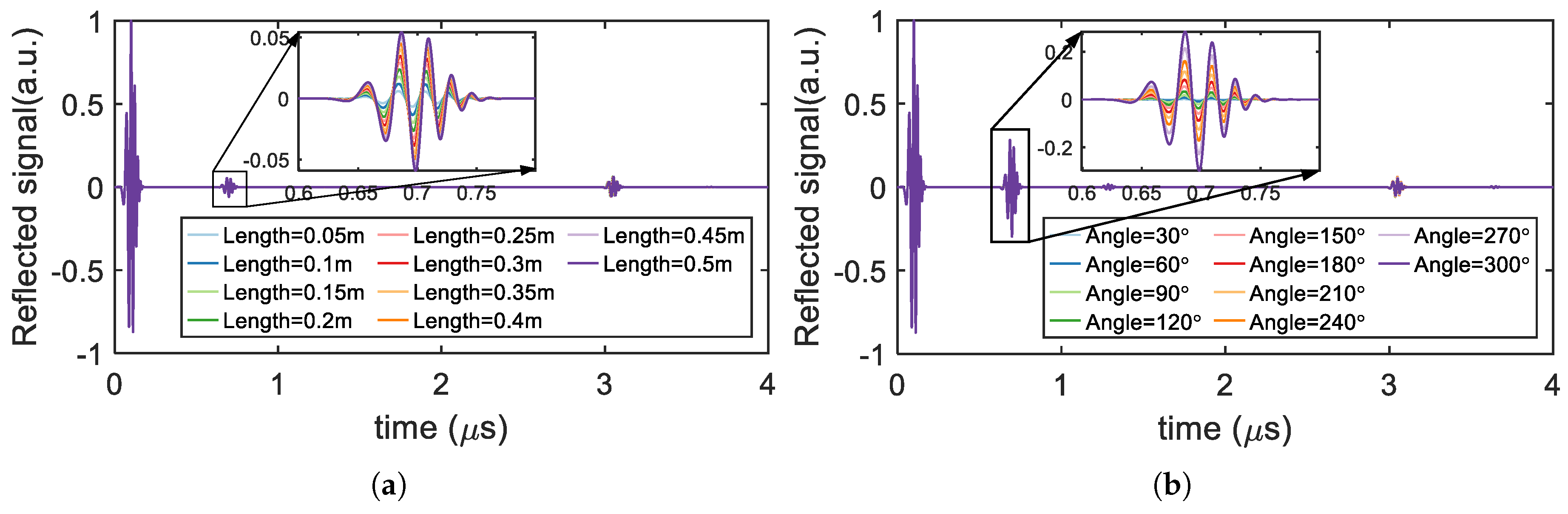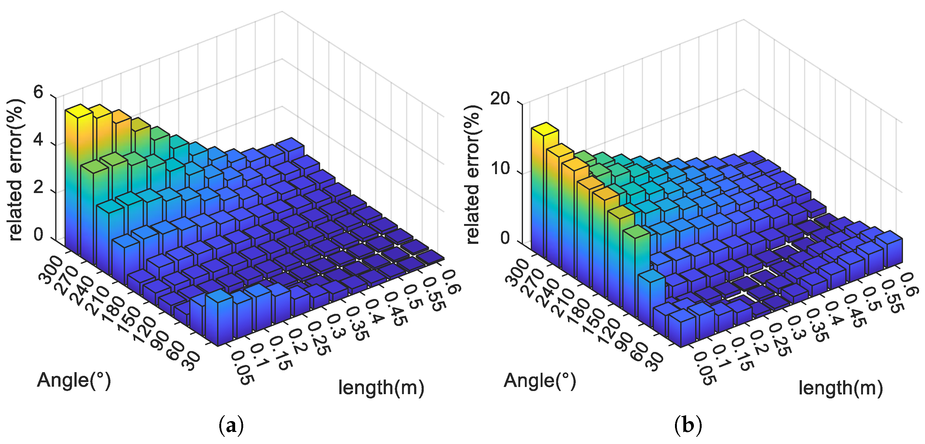 - In the long cable simulation results, the estimated error of defect angles and lengths increased with the increase in defect angle. When the defect angle is lower than 300°, the proposed method has a high accuracy and robustness.