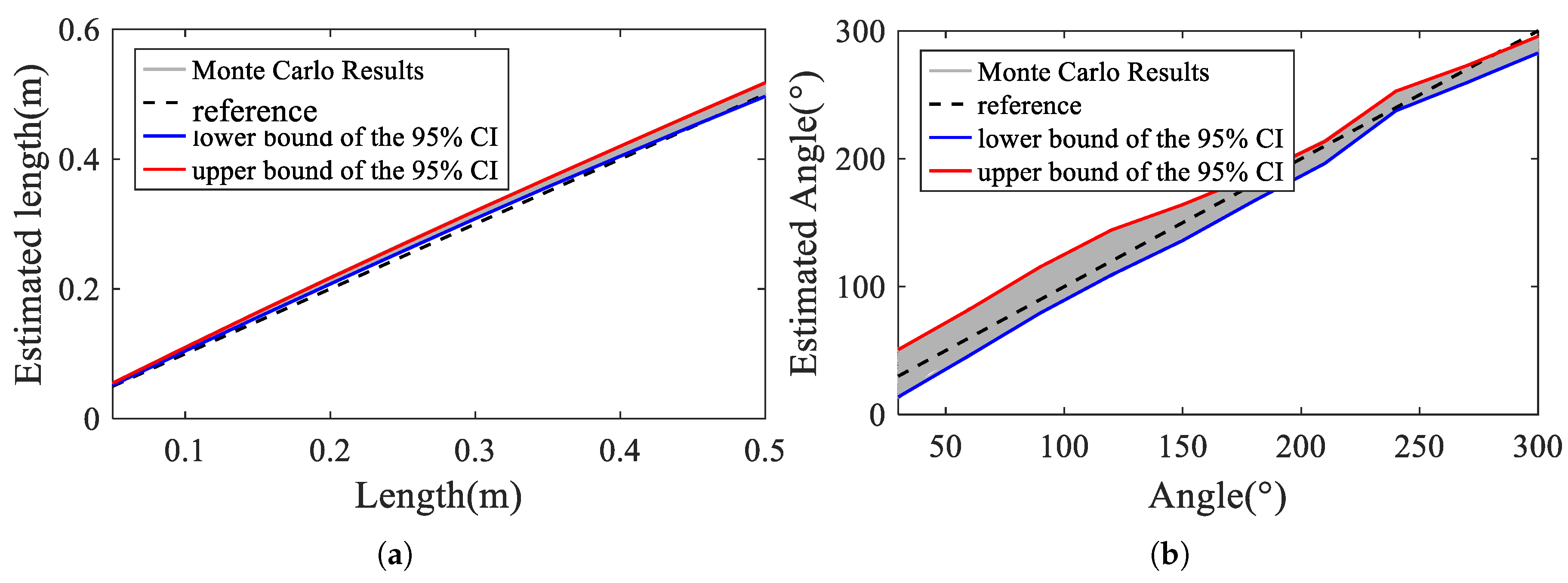 | Type | Defect Size | and Confidence Interval (cm) | Relative Error (%) | and Confidence Interval (°) | Relative Error (%) |