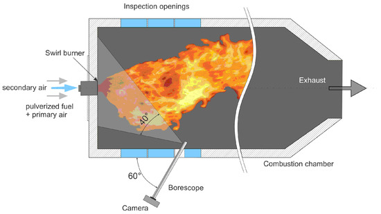 - Hernández, R.; Ballester, J. Flame Imaging as a Diagnostic Tool for Industrial Combustion. Combust. Flame 2008, 155, 509–528. [Google Scholar] [CrossRef]