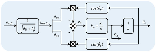 Motor model-based strategies have attracted extensive interest owing to their inherent design flexibility and straightforward implementation. Various model-dependent approaches have been proposed in the literature, such as the model reference adaptive system (MRAS) [11,12], extended Kalman filter (EKF) [13], flux linkage observers [14,15], and back electromotive force (BEMF) estimation techniques [16,17]. Among them, BEMF estimation methods stand out due to their implementation simplicity and robust estimation performance. Typically, such schemes comprise a BEMF observer in conjunction with a rotor position estimation algorithm.