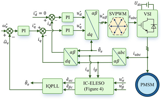 The rest of this article is organized as follows: The mathematical model of PMSM, estimation scheme based on traditional LESO, and QPLL are given in Section 2. In Section 3, the design of IC-ELESO are presented. The design of the IQPLL method is given in Section 4. Section 5 shows the experimental results. Finally, conclusions are drawn in Section 6.