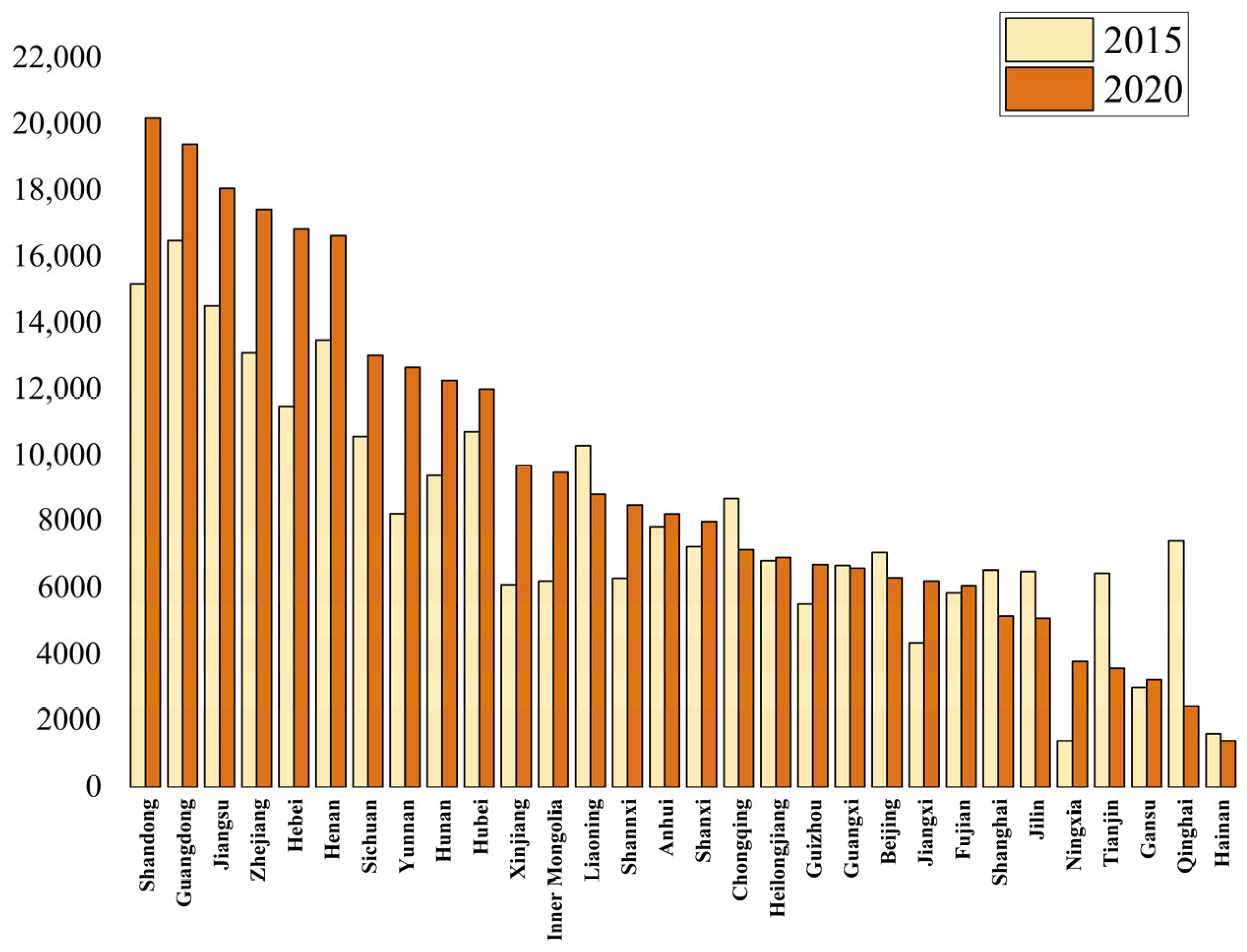 Shandong | 15,186.65 | 22,888.24 | 6856.64 | 13,091.13 | 16,068.43 | 22,446.68 | 7276.92 | 9534.40 |