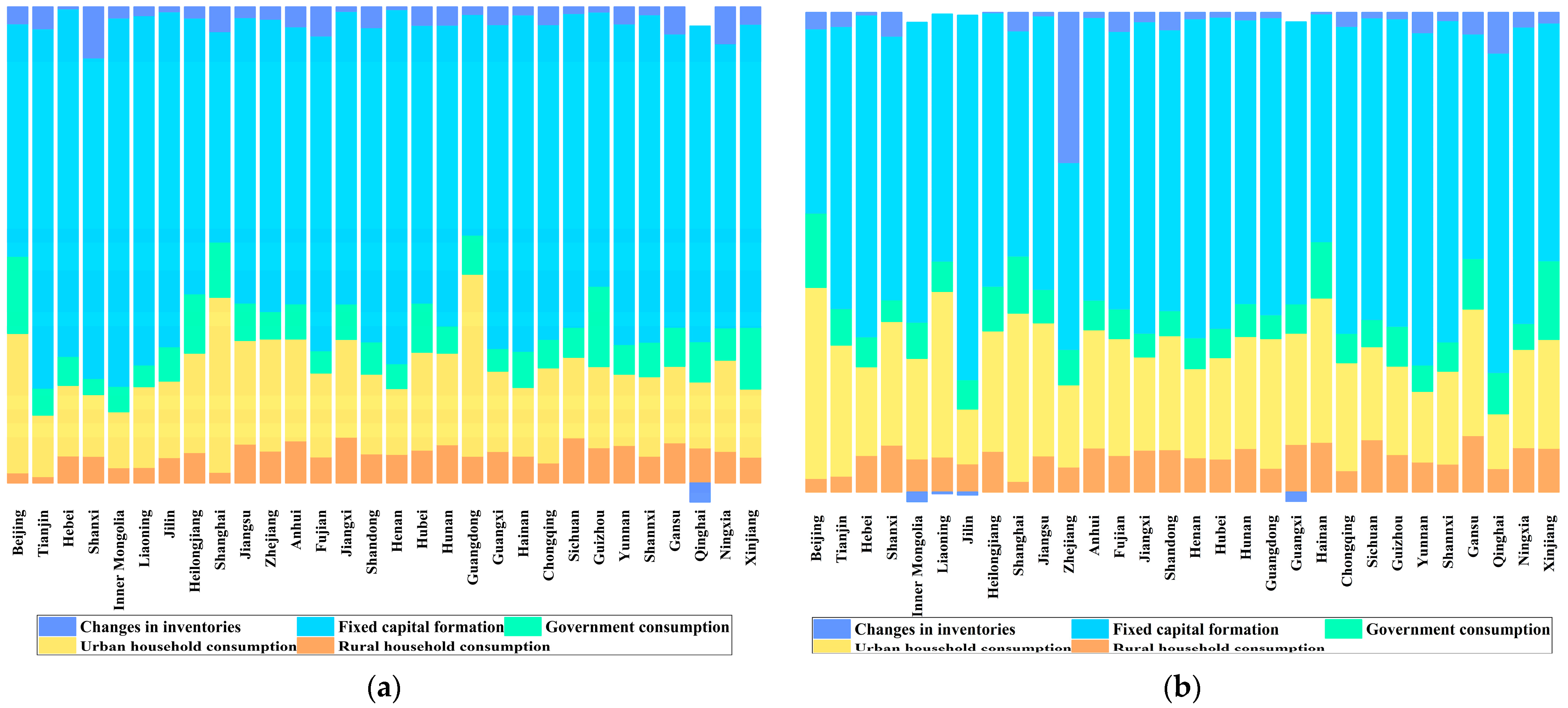 4.2.1. Inter-Provincial Consumption-Side Embodied Energy Flow