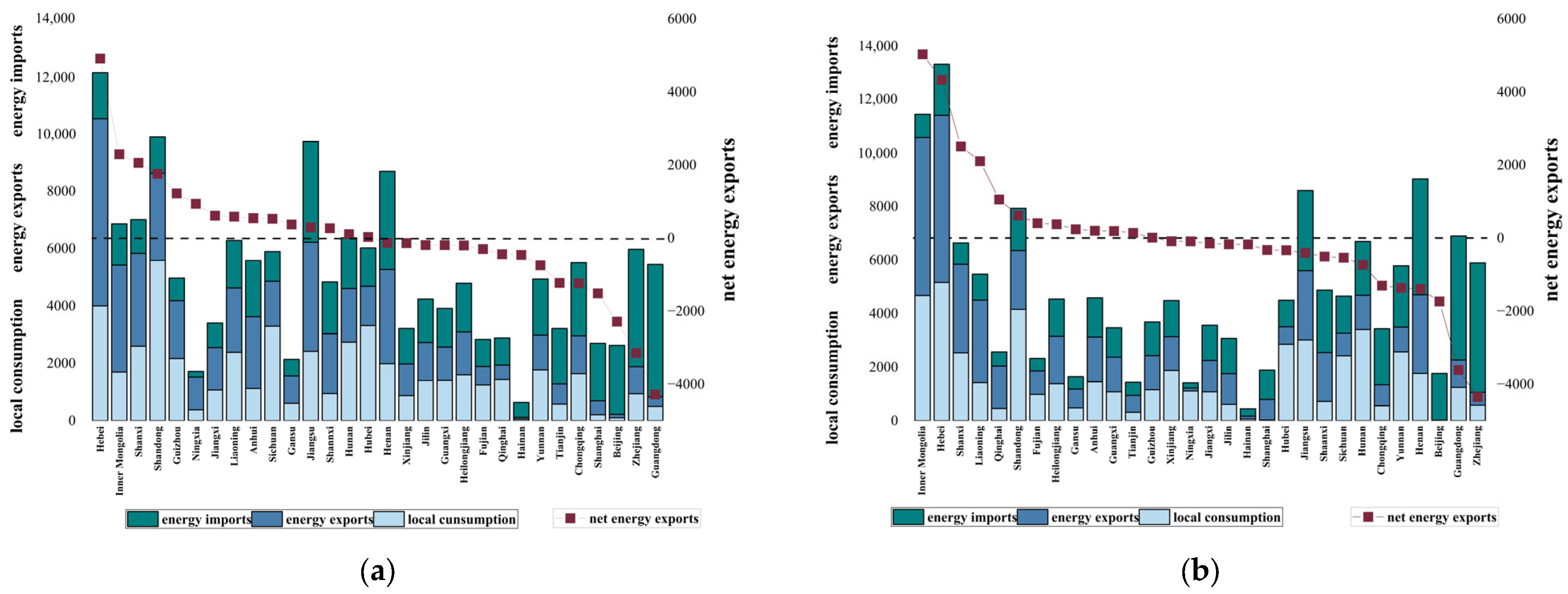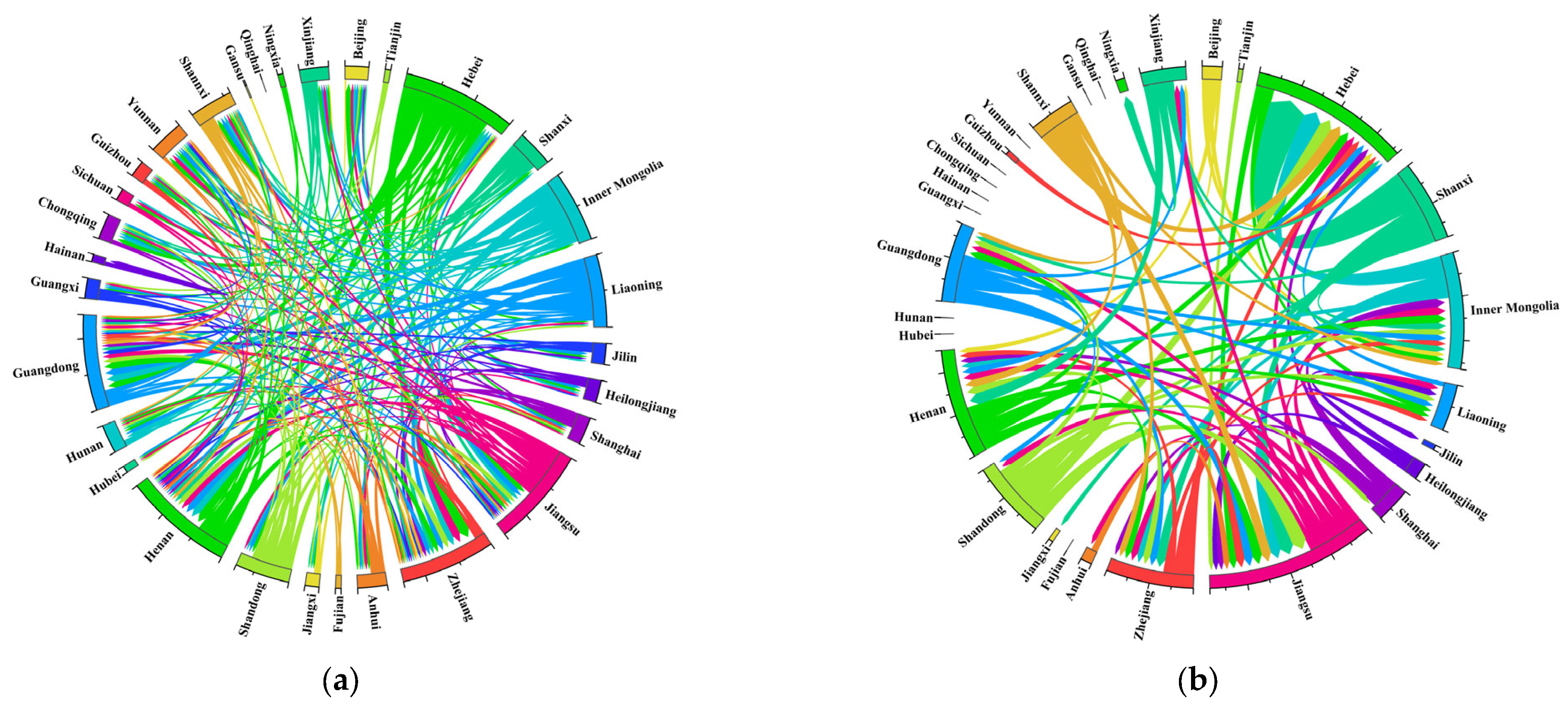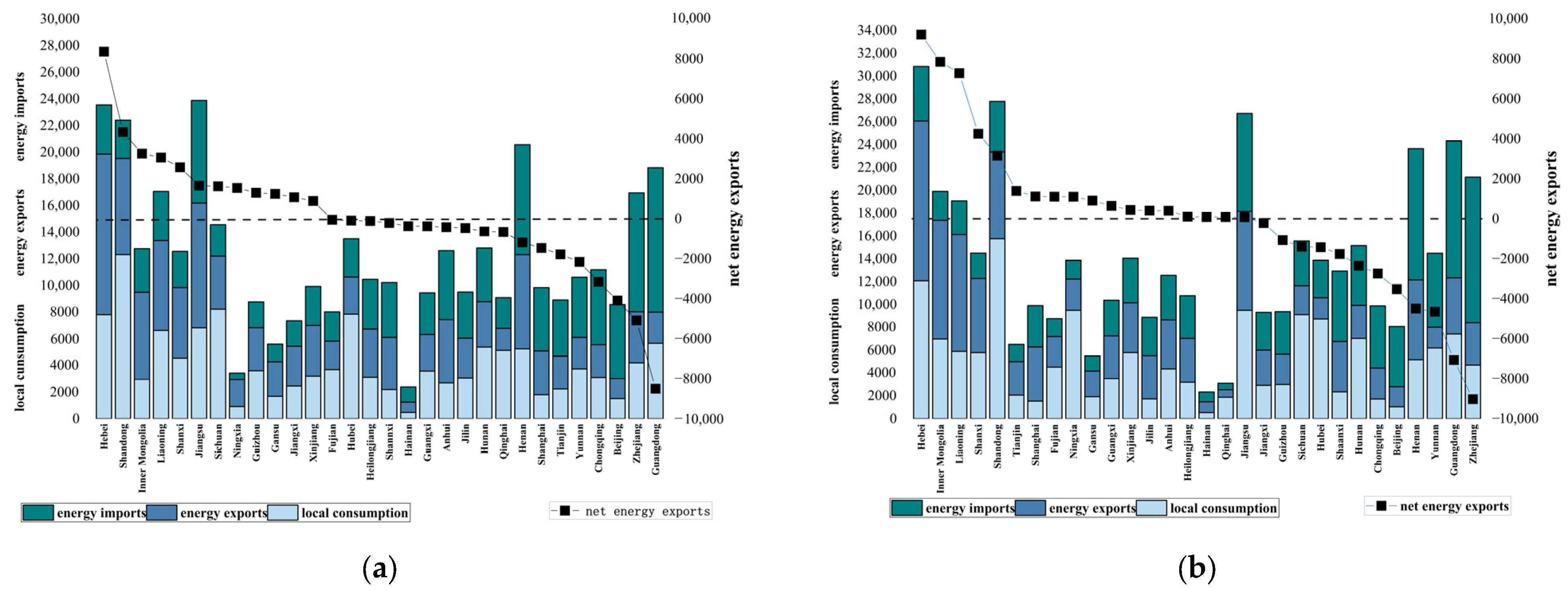 4.1.2. Energy Flow Embodied in Inter-Provincial Trade