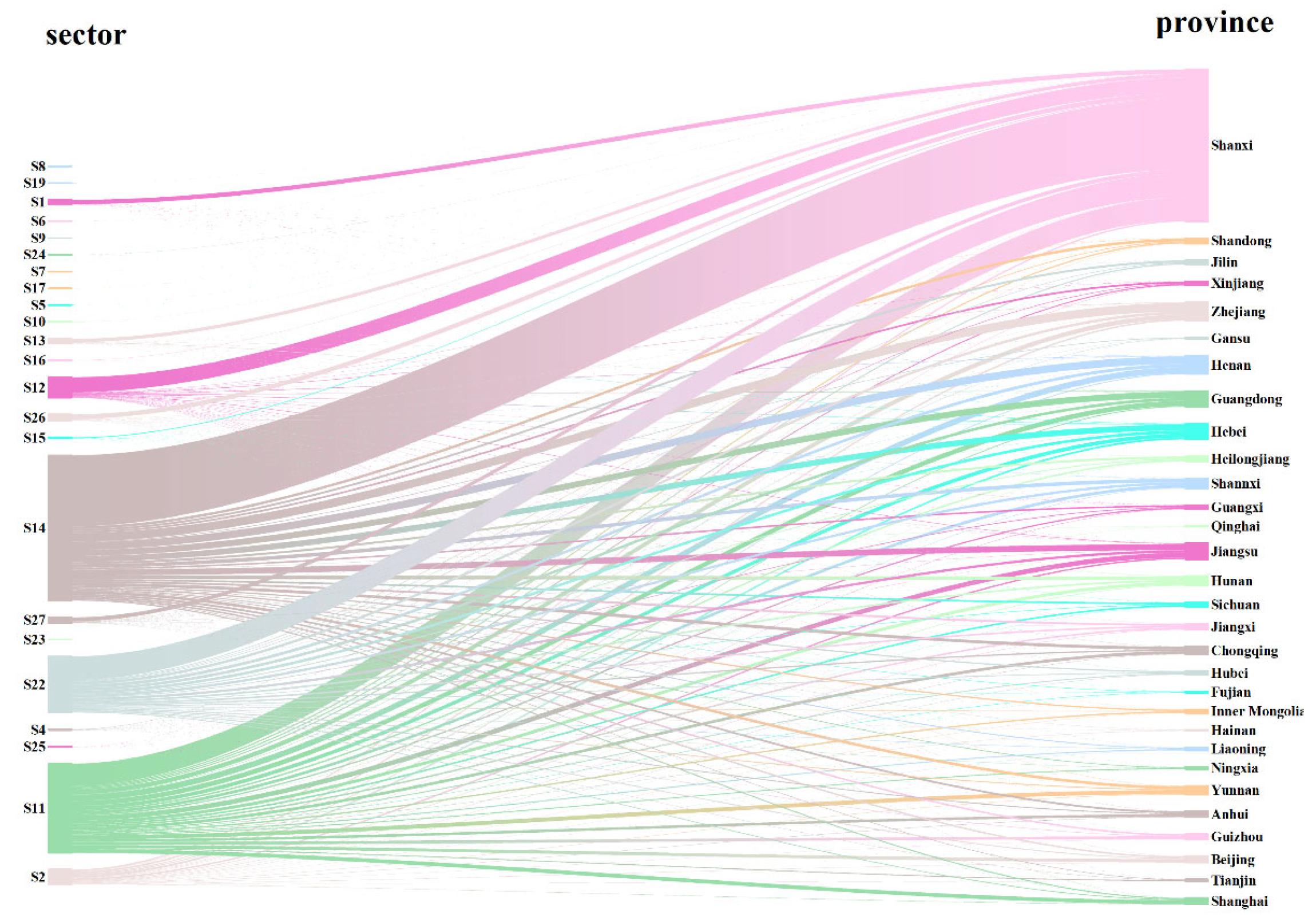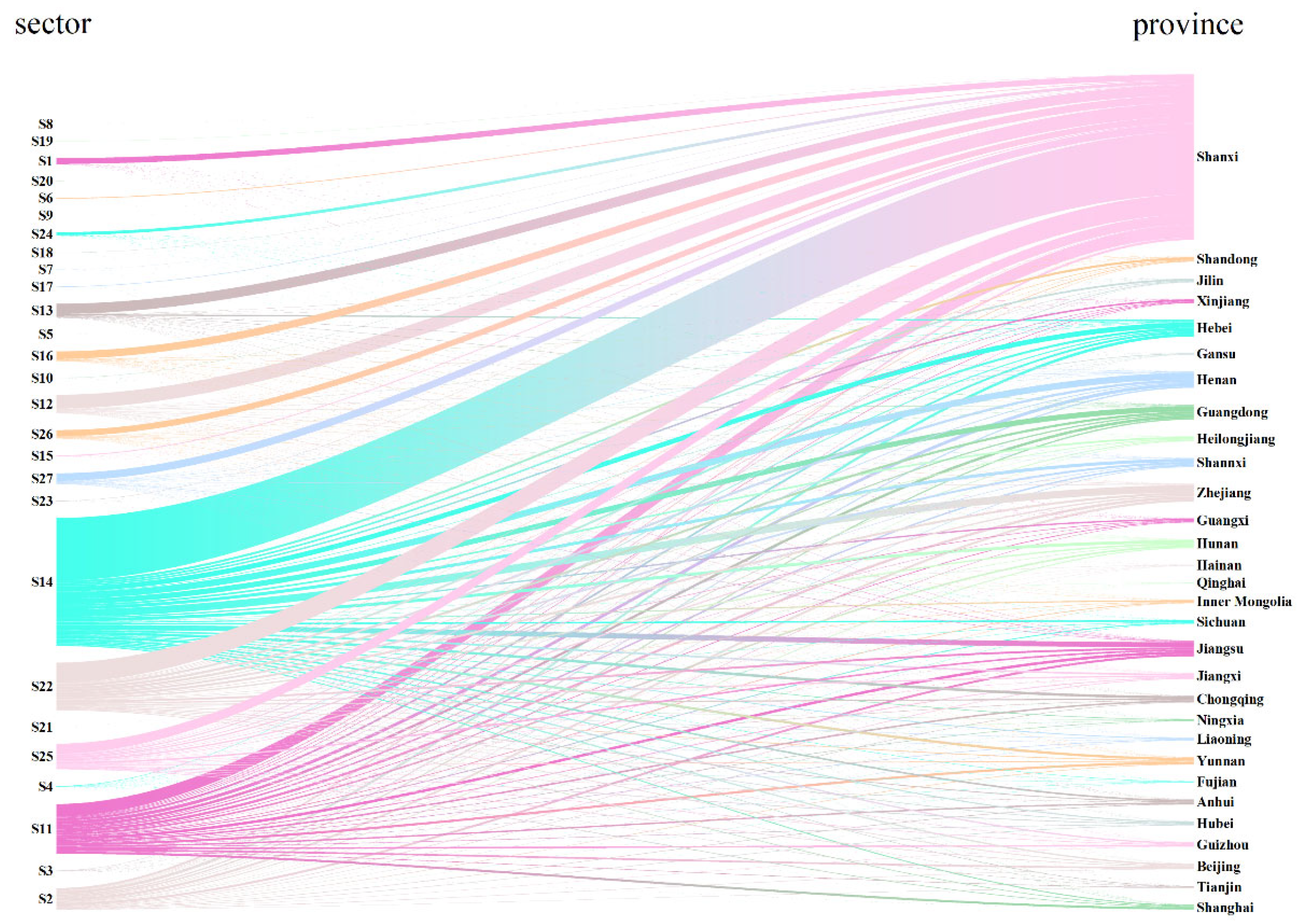 4.3.2. Coal Flow Embodied in Inter-Provincial Trade